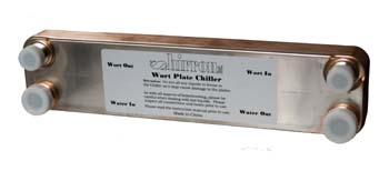 Many home brewers prefer using plate chillers to cool their wort, mainly because they’re relatively small size and excellent efficiency. If you think that a plate chiller is right for you, you might want to consider the Shirron Plate Wort Chiller from MoreBeer! This compact chiller features 11 stainless steel plates fused together with copper solder, creating an incredibly durable base that is truly made to last.,This chiller features small channels that weave their way across the surface of each plate, creating more surface area for the wort to travel over in order to cool it down more thoroughly. There are two ½ inch male pipe threads for the wort inlet and outlet, while the water in and out is a ¾ inch male garden hose thread.,Using a plate chiller requires much more thorough cleaning than an immersion chiller, and the tiny pockets from the channels in the plates require extra attention to avoid bacteria growth. Most brewers recommend back flushing the chiller immediately after use. ,,12.5" long, 3" wide, and 2" thick.,
