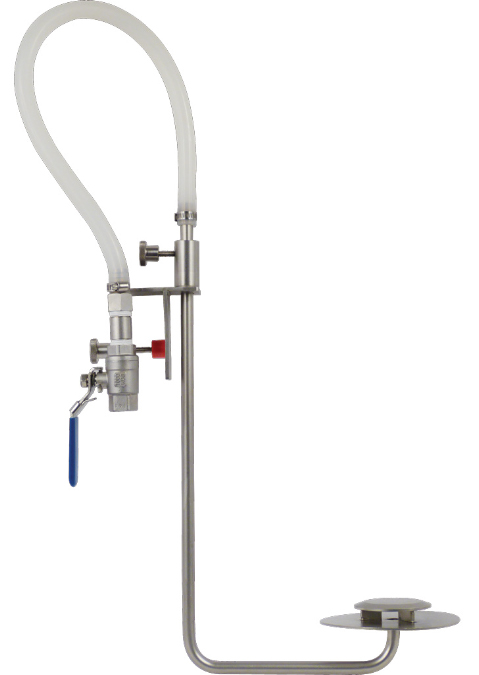 MoreBeer!'s Patent Pending sparge arm design is the perfect addition to almost any all grain setup! This sparge arm assembly is made completely of stainless steel and silicone, and has two adjustment points. One of these will help to hold the sparge arm against your kettle, while the other allows you to move the sparge arm up or down inside the kettle to accommodate different amounts of grain. These adjustment knobs are very easy to hand tighten and loosen, meaning no tools are necessary. Excellent for sparging as well as recirculating your mash in a RIMS or HERMS system!,,To use, simply install on your kettle wall, tighten down the red stopper to hold the sparge arm in place, adjust the height of the bottom disc to be right above your grain bed but below the mash tun's water level, and adjust the flow level using the included ball valve. This unit will not include a barb or quick disconnect on the inlet of the ball valve, as every brewery is different. Please choose an inlet attachment from the sparge arms recommended items. Note - This sparge arm will not fit on most coolers. Make sure to check out the video in the video tab above., ,,,100% stainless and silicone construction,,,Two adjustment knobs make it extremely universal,,,Included ball valve allows you to increase or decrease the flow rate during sparge or recirculation,,,Included check ball will prevent back flow,,,Can adjust from the top of your kettle to 12-13 inches down into your kettle,,,A single, large diameter outlet port trickles onto a stainless disc, which distributes sparge water gently and evenly. This port is also much easier to flush out and keep clean than many other sparge assemblies with multiple small holes that grain gets stuck in during recirculation,,,Stainless tube measures 18.5" from the top to the bend, and 8.5" from the bottom to the center of the distribution disc.,,,Can be mounted on a lip that is up to 7/8" wide,,,Has a 1/2" FPT ball valve